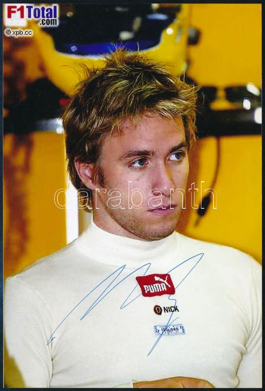 Leírás: Nick Heidfeld (1977-) német autóversenyző aláírása fotón