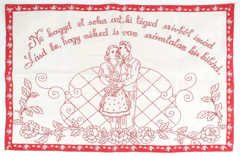 Hímzett fali terítő, "Ne hagy el soha azt, ki téged szívből imád - Lás... https://www.darabanth.com/hu/433-Gyorsarveres/433.0/Mutargy-papirregiseg-egyeb/Bolhapiac~500012/Himzett-fali-terito-Ne-hagy-el-soha-azt-ki-teged-szivbol-imad-Lasd-be-hogy-neked-is-v~II2792025