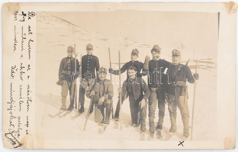 Leírás: 1914 Bondone magyar katonák sítalpon fotólap