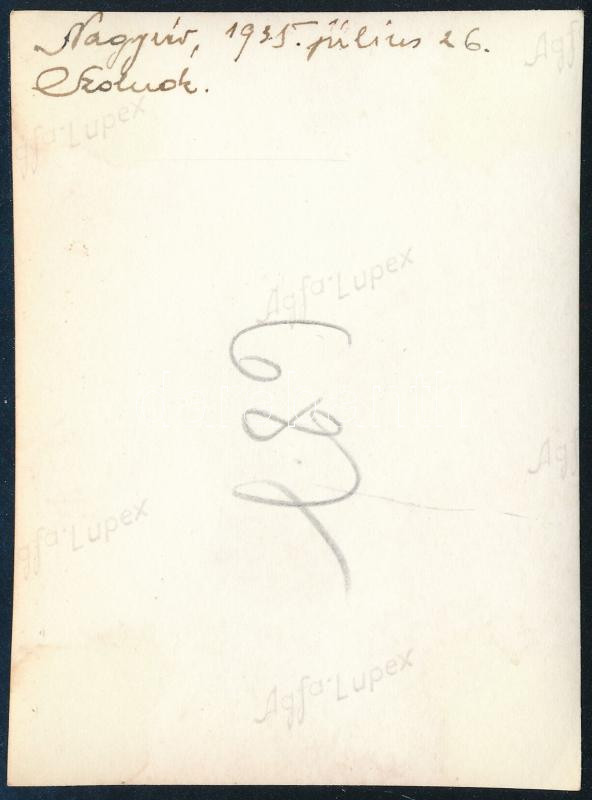 Leírás: 1935 Szolnok, Tiszai hajósok tere, I. világháborús katonai emlékmű, a hátoldalon feliratozott fotó, 8,5x6 cm