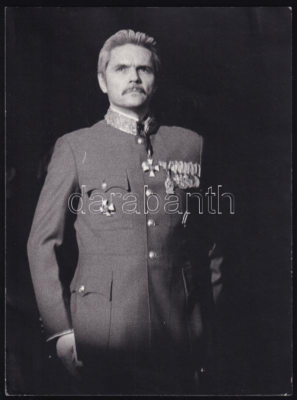Oszter Sándor színész, mint Kiss János altábornagy, a Vaskorona-rend lovagja, egyenruhában, kitüntetésekkel; sajtófotó, a hátoldalon feliratozva, 22,5x16,5 cm