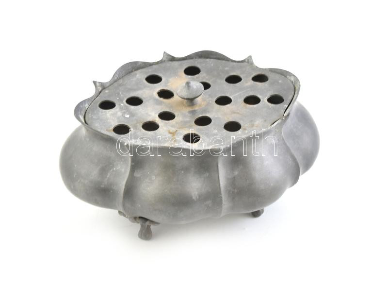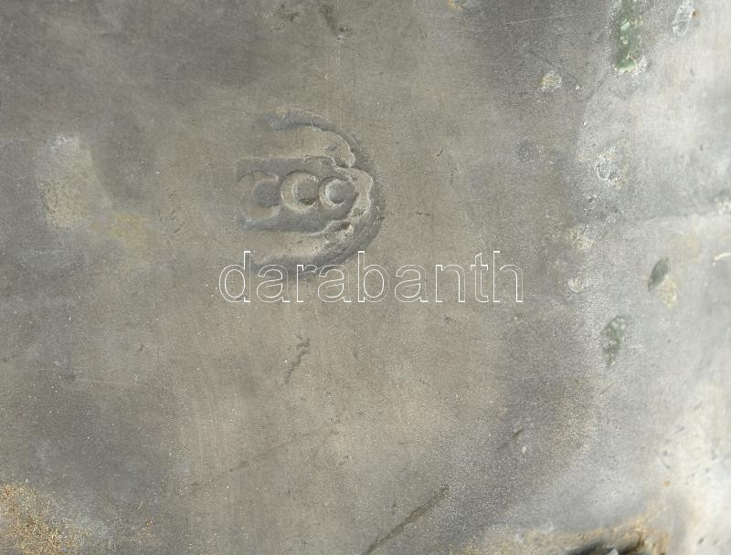 Leírás: Antik ón virágtartó / jardiniere, szálas virágnak, jelzett, kopott, d: 17 cm