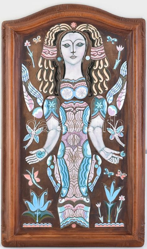 Leírás: Stefániay Edit (1936 - ): A tavasz emlékei. 2003. Tűzzománc. 80x74cm