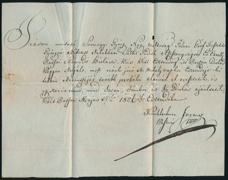 Leírás: 1826 gr Festetits Györgynénél szolgált számadó birkás részére kiadott szabadulólevél