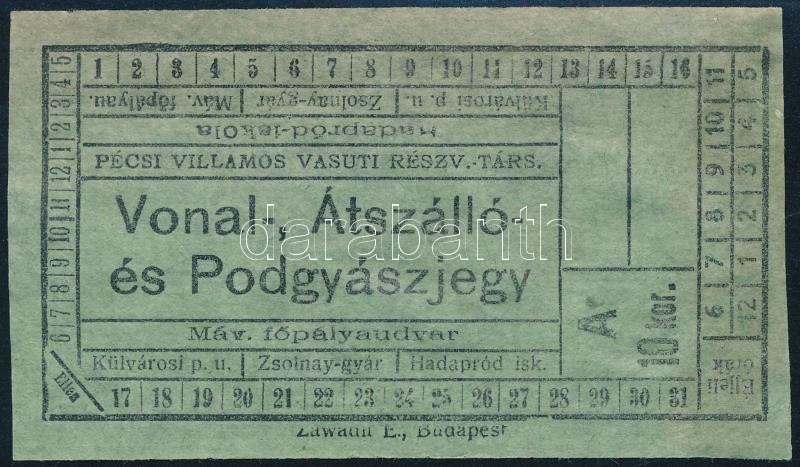 Leírás: 1913 Pécsi villamosjegy, szép állapotban