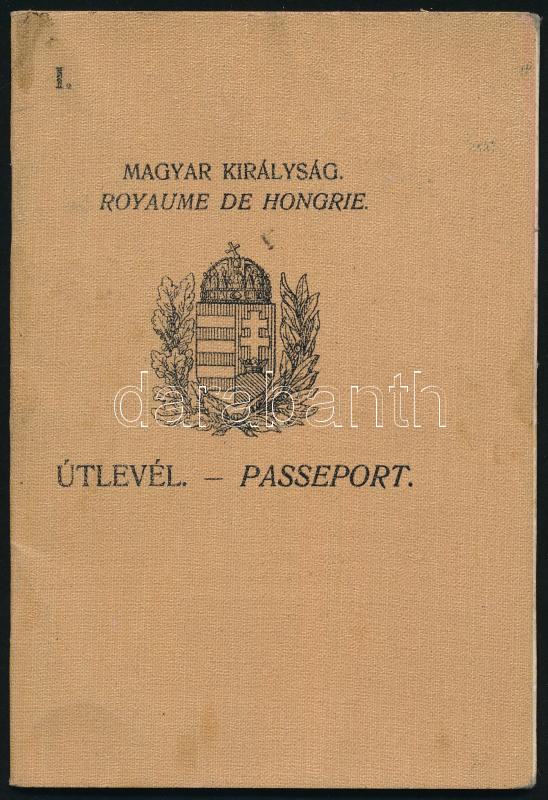 1930 Bp., A Magyar Királyság által kiállított fényképes útlevél / Hung... https://www.darabanth.com/hu/433-Gyorsarveres/433.0/Mutargy-papirregiseg-egyeb/Okmanyok~500019/1930-Bp-A-Magyar-Kiralysag-altal-kiallitott-fenykepes-utlevel-Hungarian-passport~II2794530