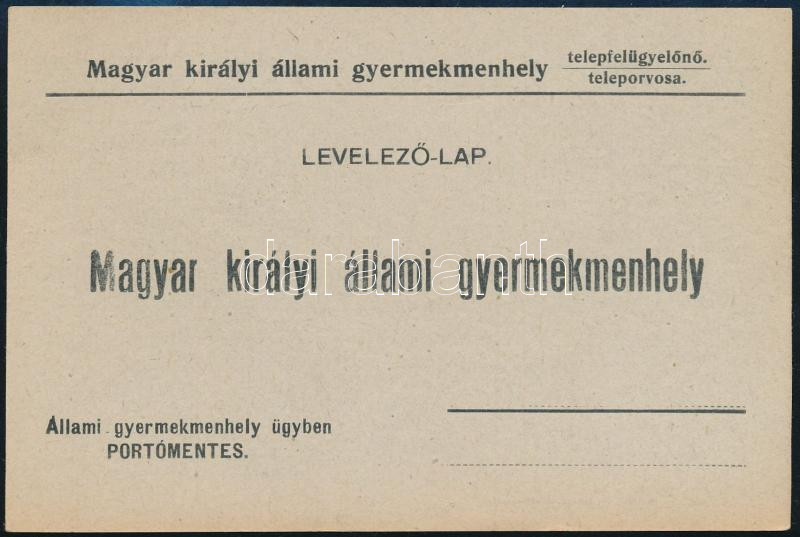 Leírás: cca 1930 M. kir. állami gyermekmenhely levelezőlap, kitöltetlen