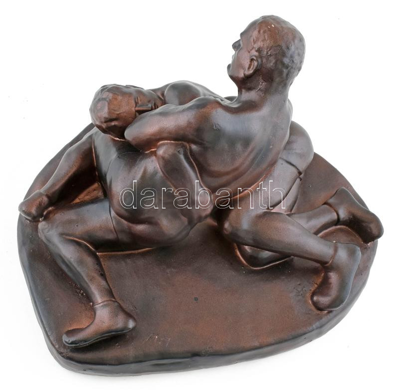 Leírás: MM jelzéssel: birkózók. Festett gipsz, kopásokkal, d: 35 cm