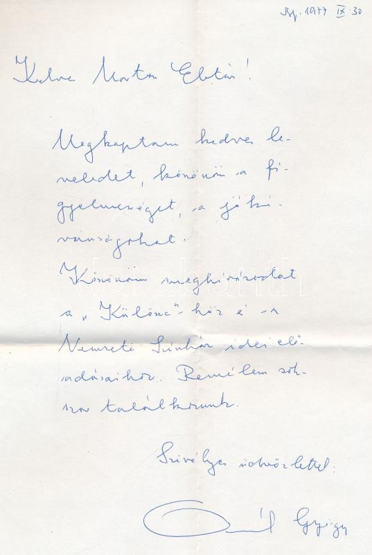 1977 Aczél György (1917-1991) miniszterelnök-helyettes saját kézzel ír... https://www.darabanth.com/hu/433-Gyorsarveres/433.0/Mutargy-papirregiseg-egyeb/Tortenelmi-dokumentumok-keziratok-erdekessegek~500020/1977-Aczel-Gyorgy-1917-1991-miniszterelnok-helyettes-sajat-kezzel-irt-es-alairt-levele-Ma~II2797875