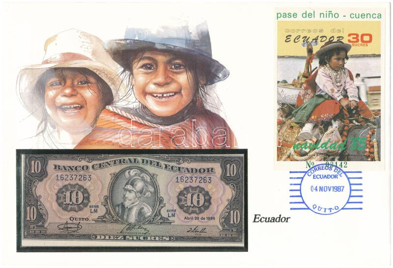 Ecuador 1986. 10S felbélyegzett borítékban, bélyegzéssel T:I Ecuador 1... https://www.darabanth.com/hu/433-Gyorsarveres/433.0/Numizmatika/Ermes-es-bankjegyes-boritekok~2000018/Ecuador-1986-10S-felbelyegzett-boritekban-belyegzessel-TI-Ecuador-1986-10-Sucres-in-envelop~II2774258