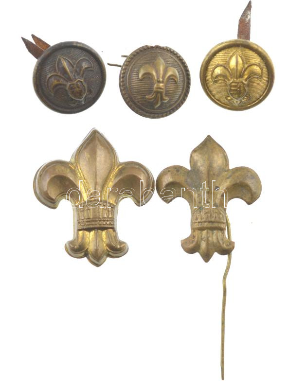 Leírás: 5db-os vegyes Cu cserkész és gomb tétel T:2