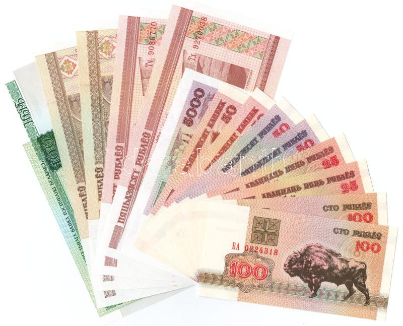 Leírás: Fehéroroszország 1992. 50k (2x) + 1992. 25R (2x) + 1992. 50R (2x) + 1998. 100R (2x) + 1998. 5000R + 2000. 20R (2x) + 2000. 50R (2x) + 2000. 100R T:I