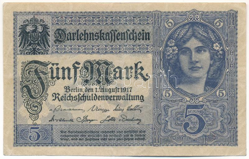 Német Birodalom 1917. 5M T:III German Empire 1917. 5 Mark C:F Krause#5... https://www.darabanth.com/hu/433-Gyorsarveres/433.0/Numizmatika/Kulfoldi-bankjegyek~2000008/Nemet-Birodalom-1917-5M-TIII-German-Empire-1917-5-Mark-CF-Krause2356~II2790731
