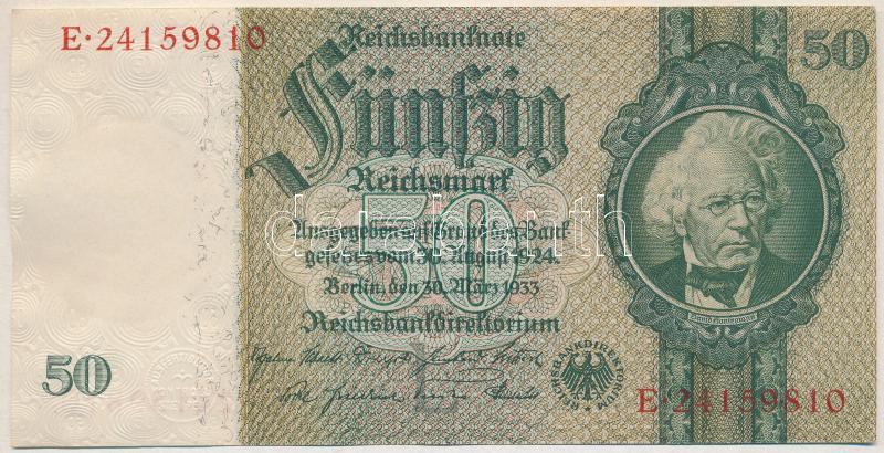 Német Harmadik Birodalom 1933. 50M "E 24159810" T:I,I- German Third Reich 1933. 50 Mark (9x) sequential and close serials "E 24159810" C:UNC,AU Krause 182.a