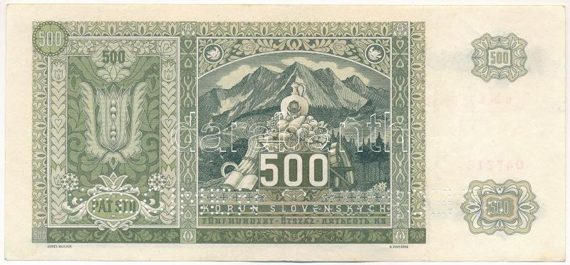 Leírás: Szlovákia 1941. 500K "8 Nk 047718", "SPECIMEN (MINTA)" perforációval T:III