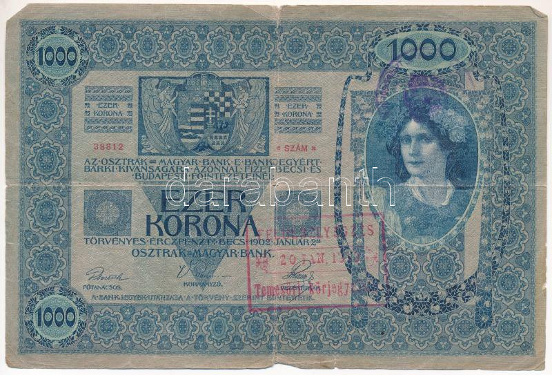 1902. 1000K (eredeti?) "Temesőr" és "Vöröskereszt"... https://www.darabanth.com/hu/433-Gyorsarveres/433.0/Numizmatika/Magyar-bankjegyek~2000015/1902-1000K-eredeti-Temesor-es-Voroskereszt-felulbelyegzessel-illetve-lekapart-szlovC3~II2795470