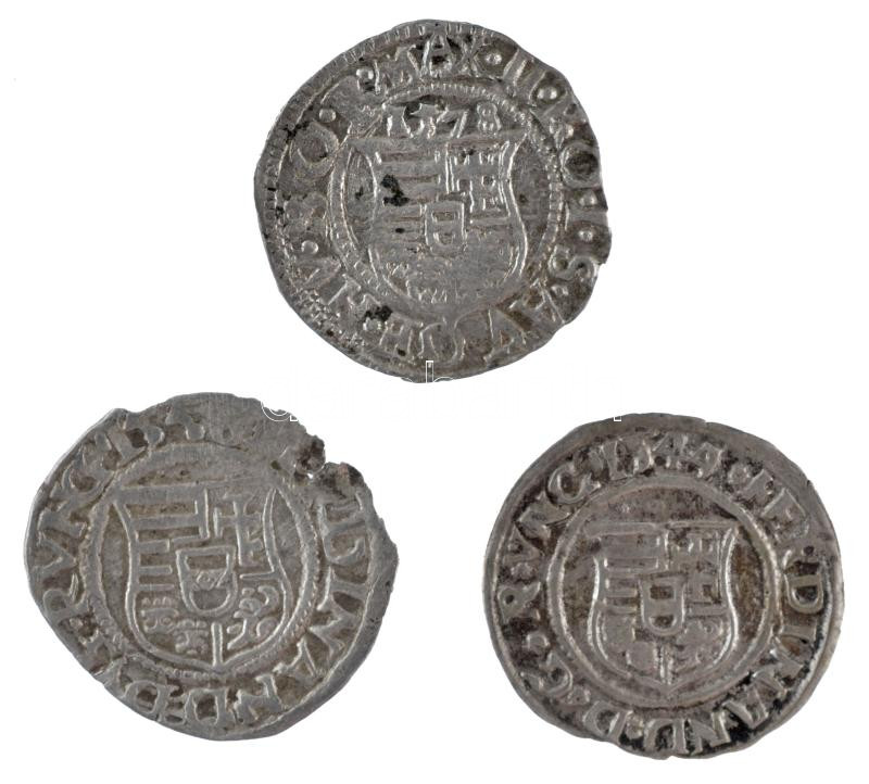 1544K-B-1578K-B Denár Ag "II. Ferdinánd" (3x) (0,46g, 0,54g, 0,55g) T:2-2- Hungary 1544K-B-1578K-B Denar Ag "Ferdinand II" (3x) (0,46g, 0,54g, 0,55g) C:XF,VF Huszár: 1205., Unger II.: 916.c