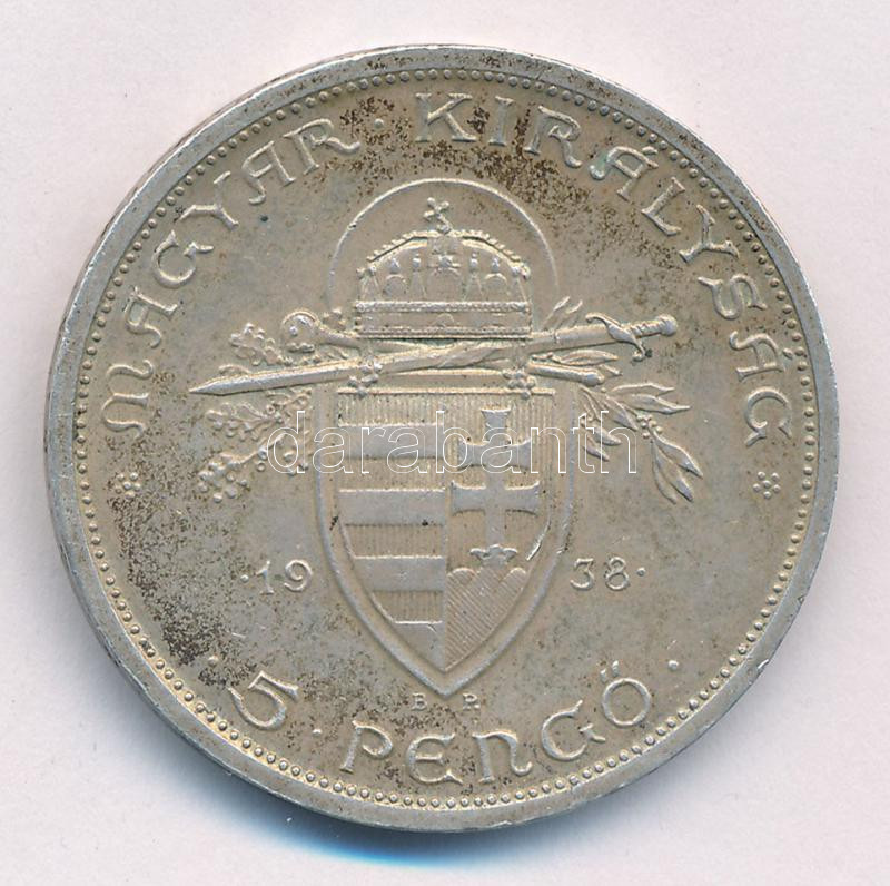 Leírás: 1938. 5P Ag "Szent István" T:1--2 patina Adamo P8.1