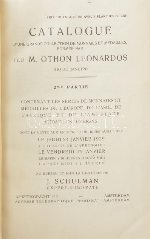 J. Schulmann két darab árverési katalógusa egybekötve: 1929. évi januá... https://www.darabanth.com/hu/433-Gyorsarveres/433.0/Numizmatika/Numizmatikai-irodalom~2000020/J-Schulmann-ket-darab-arveresi-katalogusa-egybekotve-1929-evi-januari-M-Othon-Leonardos-~II2801820