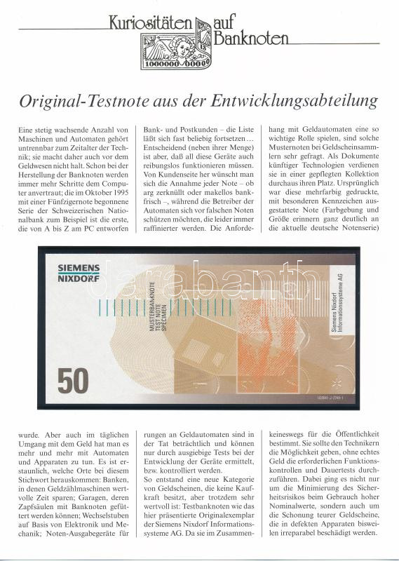 Germany 1995. experimental money printing, material test, with german description C:AU