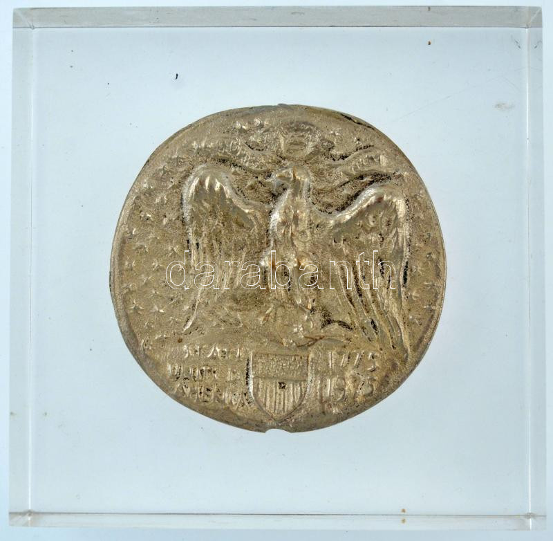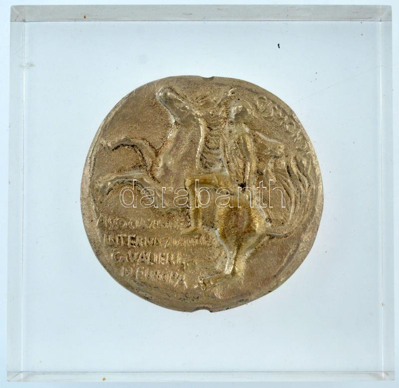 Olaszország 1975. "Gismondi - Európa Lovagjai Nemzetközi Szövetsége / Amerikai Egyesült Államok" kétoldalas emlékérem (~95mm) plexi tömbben (143x140x28mm) T:1-