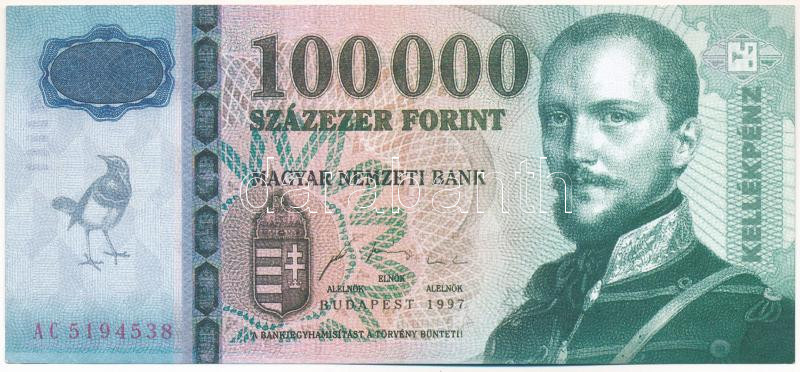 Leírás: 1997. 100.000Ft kellékpénz eltérő oldalakkal T:I