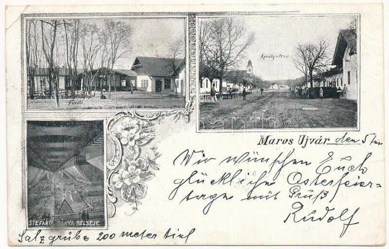 Leírás: 1901 Marosújvár, Uioara, Ocna Mures; fürdő, Király utca, Stefánia bánya belseje / spa, street, mine interior. Art Nouveau, floral (EB)