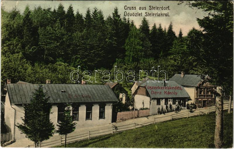 Leírás: 1907 Stájerlak, Steierlak, Stájerlakanina, Steierdorf, Anina; Denz villa, Denz Károly üzlete. Viktor Félser kiadása / villa and shop of Denz (EK)