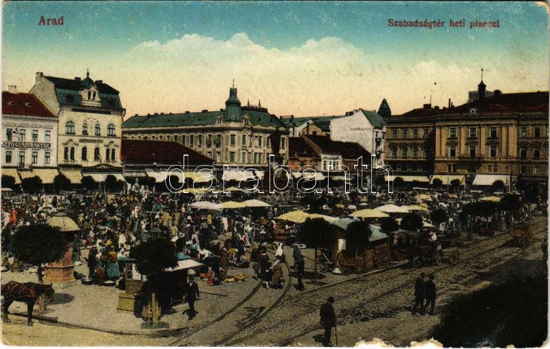 1917 Arad, Szabadság tér heti piaccal, üzletek. Kerpel Izsó kiadása / ... https://www.darabanth.com/hu/434-Gyorsarveres/434.0/Kepeslapok/Erdely~2000005/1917-Arad-Szabadsag-ter-heti-piaccal-uzletek-Kerpel-Izso-kiadasa-square-market-shops-b~II2802912
