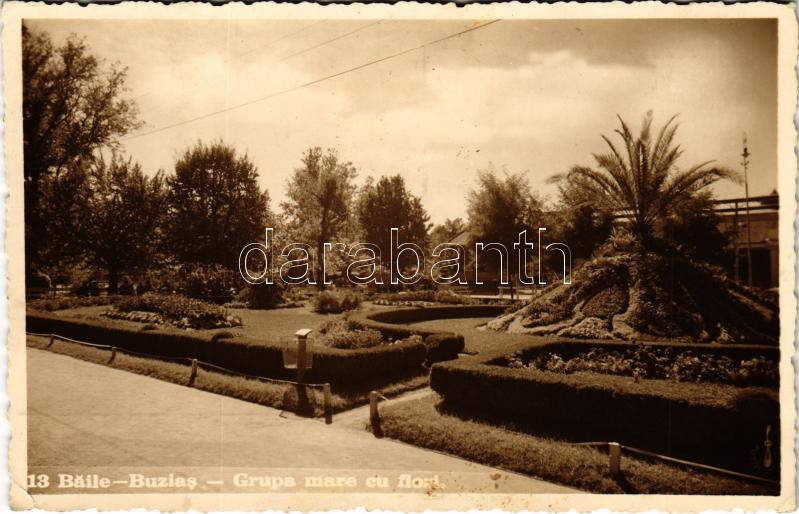Leírás: 1939 Buziásfürdő, Baile Buzias; Grupa mare cu flori / park / park (fl)