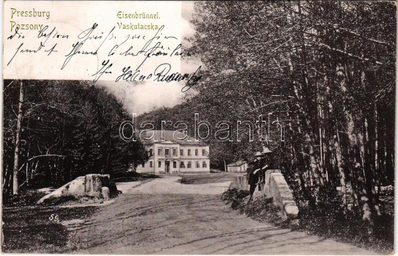 Leírás: 1900 Pozsony, Pressburg, Bratislava; Vaskutacska. Louis Koch Photographie-Karte / Eisenbrünnel (Eisenbründl) / Zelezná Studienka / spa, bathhouse