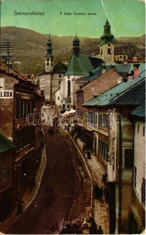 1910 Selmecbánya, Banská Stiavnica; Deák Ferenc utca, piac, szálloda. ... https://www.darabanth.com/hu/434-Gyorsarveres/434.0/Kepeslapok/Felvidek~2000006/1910-Selmecbanya-Banska-Stiavnica-Deak-Ferenc-utca-piac-szalloda-Joerges-kiadasa-street-~II2803501