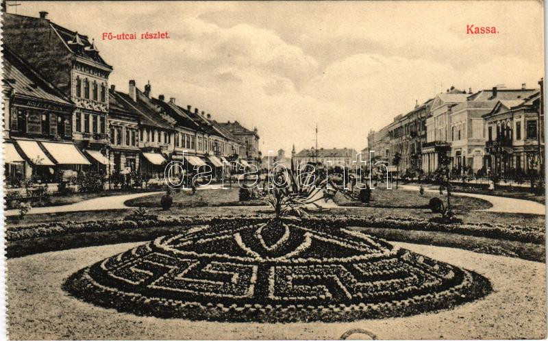 Leírás: Kassa, Kosice; Fő utca, Holzer Simon üzlete / main street, shop