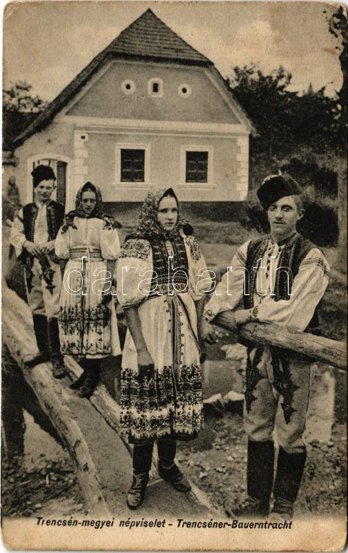 Trencsén, Trencín; Trencsén-megyei népviselet, folklór / Trencséner-Ba... https://www.darabanth.com/hu/434-Gyorsarveres/434.0/Kepeslapok/Felvidek~2000006/Trencsen-Trencin-Trencsen-megyei-nepviselet-folklor-Trencsener-Bauerntracht-folklore-fr~II2807075