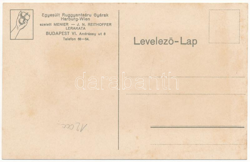 Elismert legjobb Tennislabda (tenisz). Standard Harburg V.G.F. Egyesült Ruggyantaárú Gyárak Harburg-Wien. Menier - J. N. Reithoffer lerakata Budapest VI. Andrássy út 6. reklámlap / Best tennis balls. Rubber factory sport advertisement card. litho (fl)