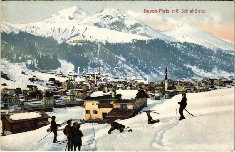 Leírás: Davos-Platz mit Schiahörner / winter sport, skiers (EK)