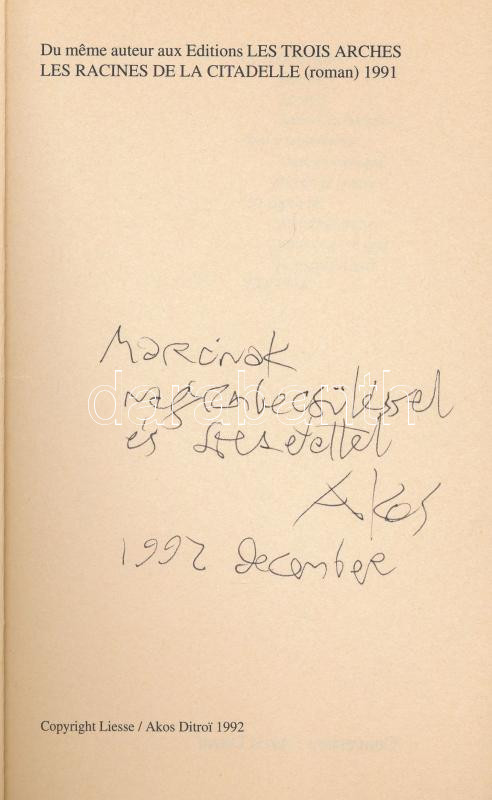 Akos Ditroi: Actions fabuleuses du justicier clonq. A szerző, Ditrói Ákos (1926-) által DEDIKÁLT példány. Paris, 1992., Éditions de Liesse, 167 p. Francia nyelvű sci-ficiton kötet. Kiadói papírkötés, kissé kopott borítóval.