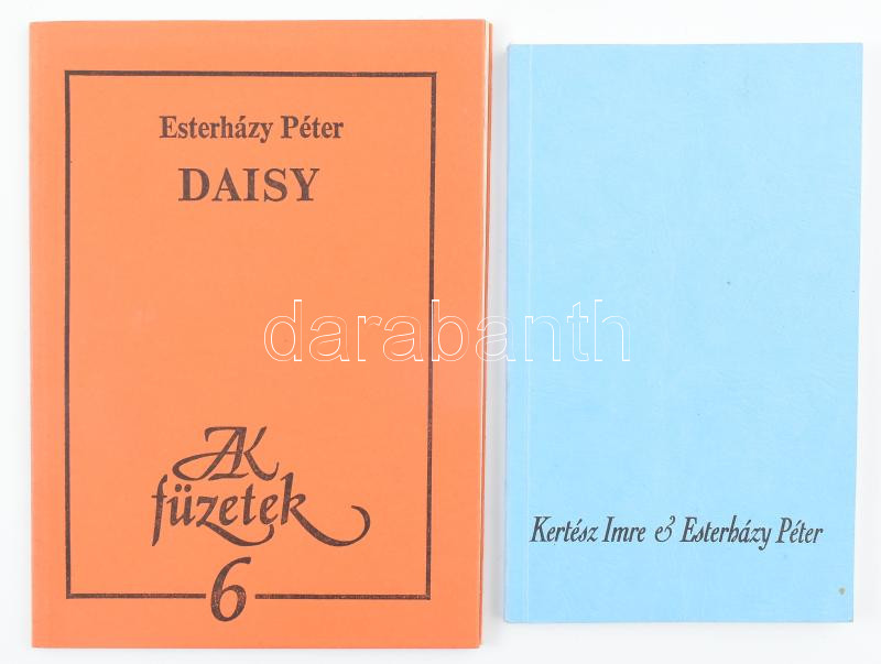 Leírás: Esterházy Péter: Daisy. JAK füzetek 6. Bp., 1984, Magvető. Első kiadás. Kiadói papírkötés. + Kertész Imre: Jegyzőkönyv. - Esterházy Péter: Élet és irodalom. Bp., 1993, Magvető - Századvég. Kiadói papírkötés.