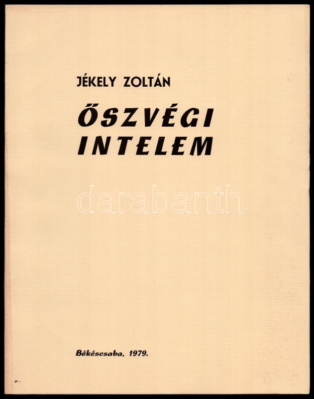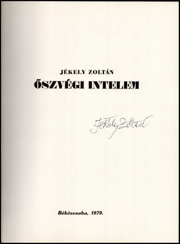 Jékely Zoltán: Őszvégi intelem. Varga Hajdú István illusztrációival. Békéscsaba, 1979., Megyei Könyvtár,12 sztl. lev. Első kiadás. Kiadói papírkötés.
