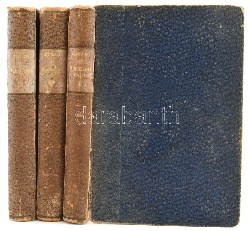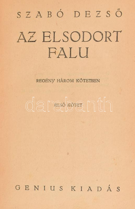 Szabó Dezső: Az elsodort falu I-III. köt. Regény három kötetben. Szabó Dezső művei. Bp.,[1929.], Genius. Harmadik kiadás. Korabeli kopott kartonált papírkötések, az I. kötet gerincén sérüléssel.