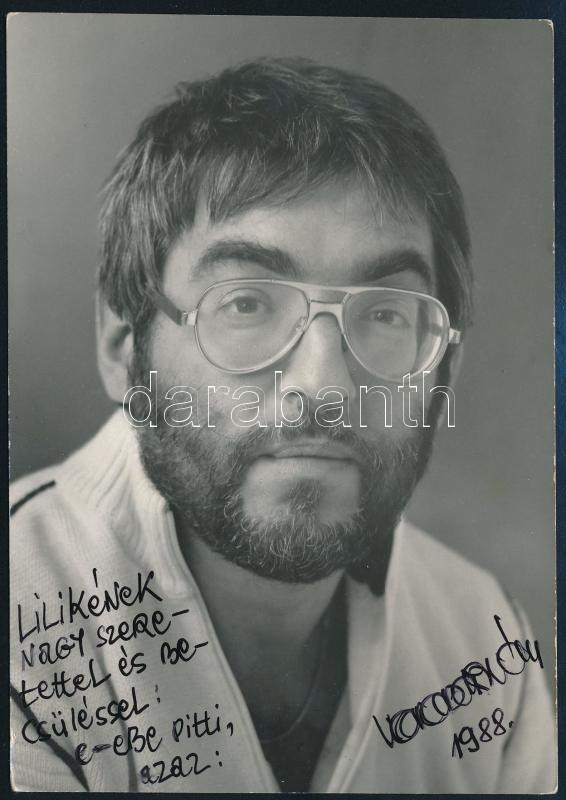 Leírás: 1988 Verebes István humorista dedikált fotója 10x15 cm