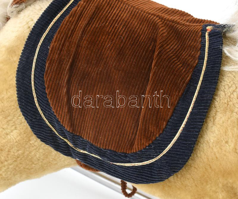 Leírás: Retró gyermek hintaló, nikkelezett fém alj, plüssel bevont felső rész, 76x32x62 cm
