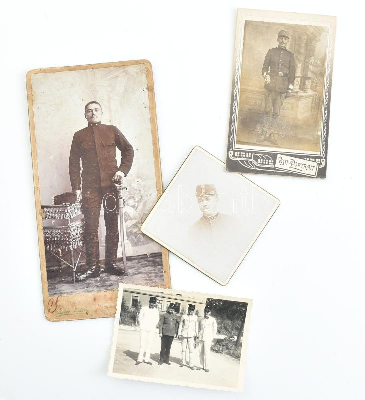 cca 1900-1920 4 db katonai fotó, közte három keményhátú, 6x6 cm és 16x... https://www.darabanth.com/hu/434-Gyorsarveres/434.0/Mutargy-papirregiseg-egyeb/Militaria~500030/cca-1900-1920-4-db-katonai-foto-kozte-harom-kemenyhatu-6x6-cm-es-16x8-cm-kozott~II2808075