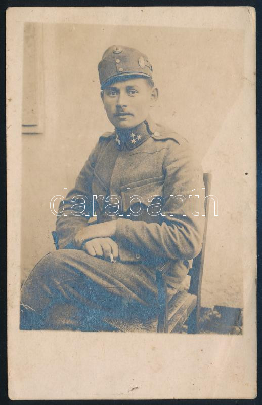 cca 1914-1918 A cs. és kir. 83. gyalogezred (K.u.K. Infanterie-Regiment 83.) katonatisztje (százados), egyenruhában, sapkajelvénnyel; I. világháborús fotólap, 13,5x8,5 cm