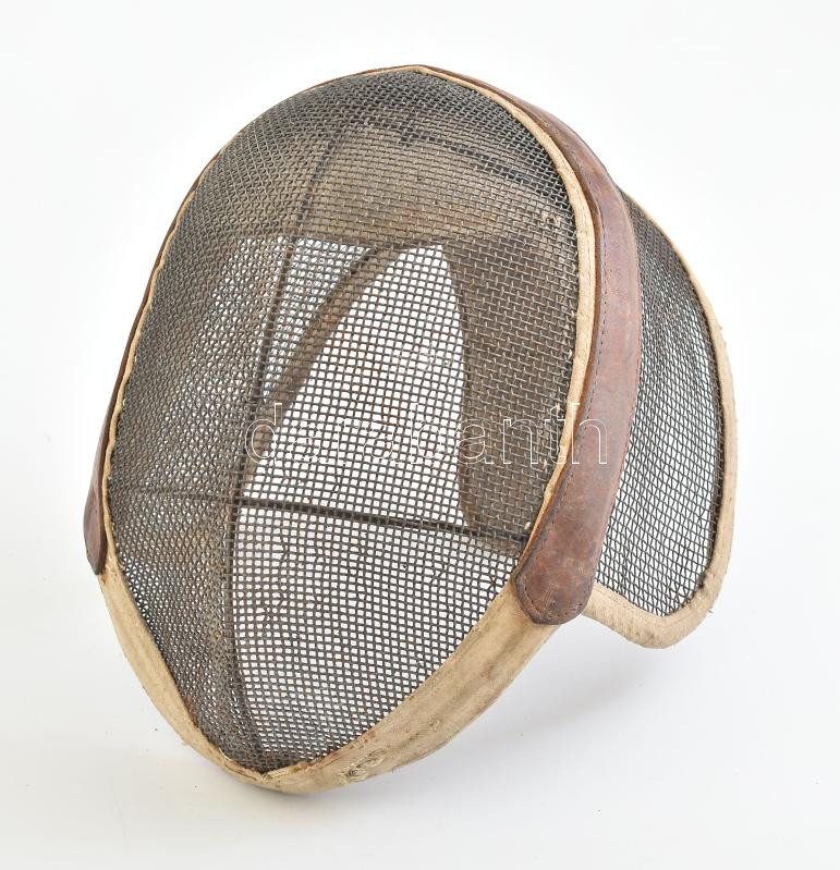 Leírás: Régi vívósisak. Drót, vászon, bőr. Jelzés nélkül, korának megfelelő, viseltes állapotban, 26x22 cm