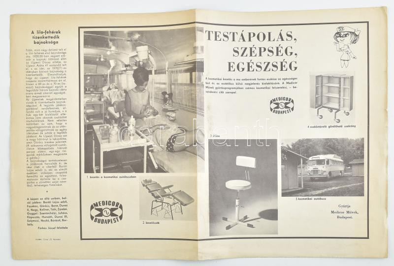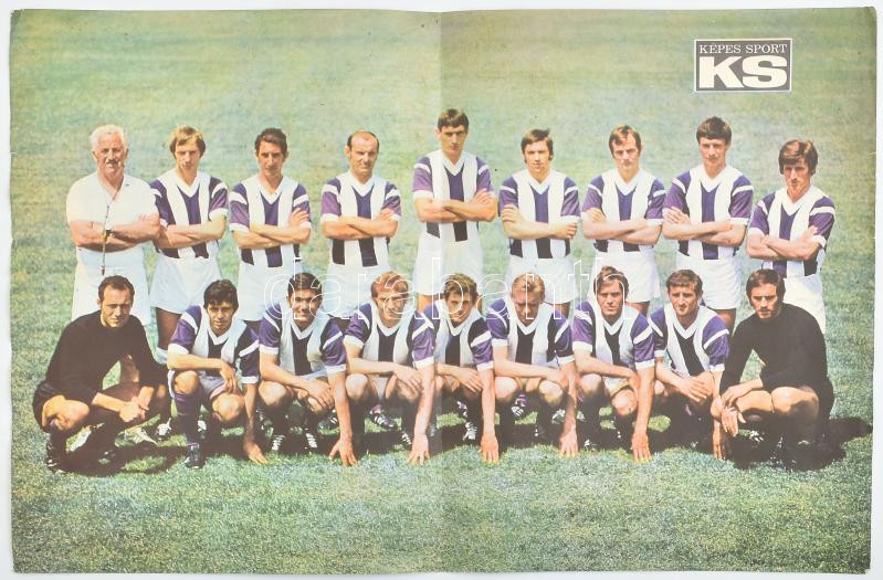 Leírás: cca 1970 Az Újpest labdarúgócsapata (Bene, Fazekas, Baróti, Göröcs, stb.), Képes Sport poszter, 45x30 cm