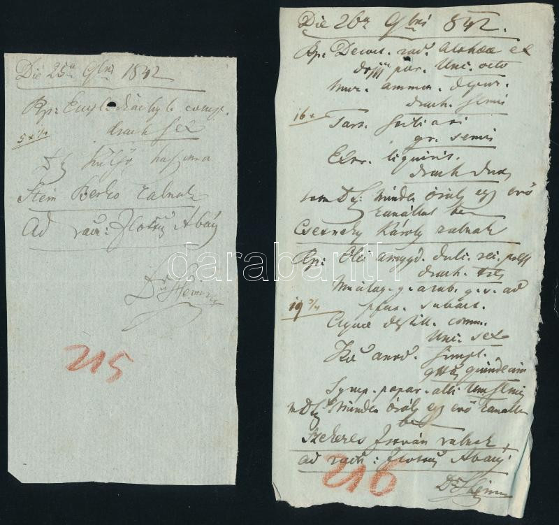 1842 2 db orvosi recept, Dr. Heim által kiállítva, latin és magyar nye... https://www.darabanth.com/hu/434-Gyorsarveres/434.0/Mutargy-papirregiseg-egyeb/Okmanyok~500020/1842-2-db-orvosi-recept-Dr-Heim-altal-kiallitva-latin-es-magyar-nyelven~II2805559