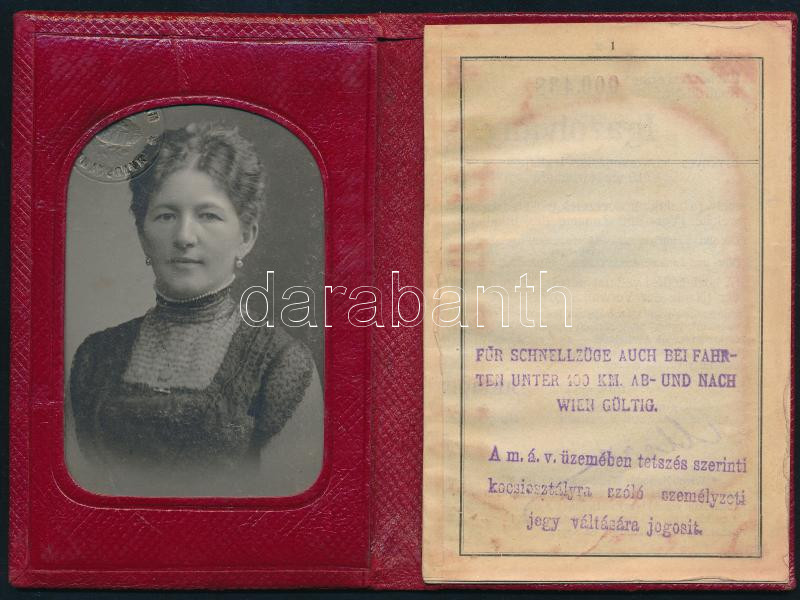 1910 Fényképes MÁV igazolvány, díszes aranyozott vászonkötésben, jó ál... https://www.darabanth.com/hu/434-Gyorsarveres/434.0/Mutargy-papirregiseg-egyeb/Okmanyok~500020/1910-Fenykepes-MAV-igazolvany-diszes-aranyozott-vaszonkotesben-jo-allapotban~II2805488