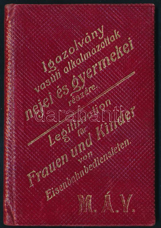 Leírás: 1910 Fényképes MÁV igazolvány, díszes aranyozott vászonkötésben, jó állapotban