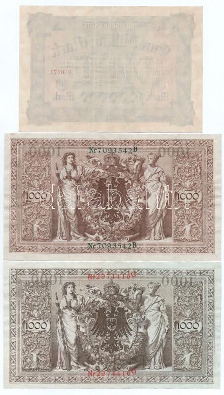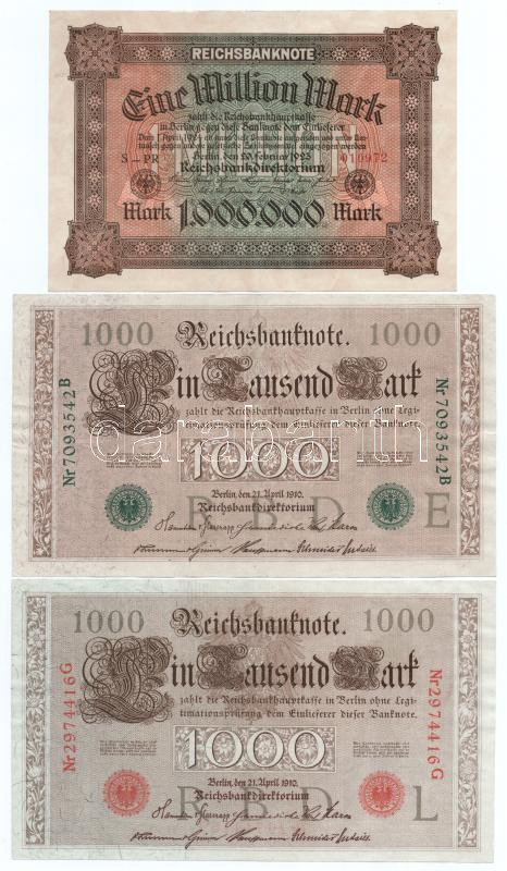 German Empire / Weimar Republic / 1908-1923. 100 Mark - 10.000.000.000 Mark (6xdiff) C:AU-F with fine paper and small tear in it